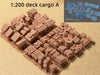 1:350, 1:200 harbour cargo, cases, boxes, ammo box, ship building material, container, oil drum, wood piles, chest
